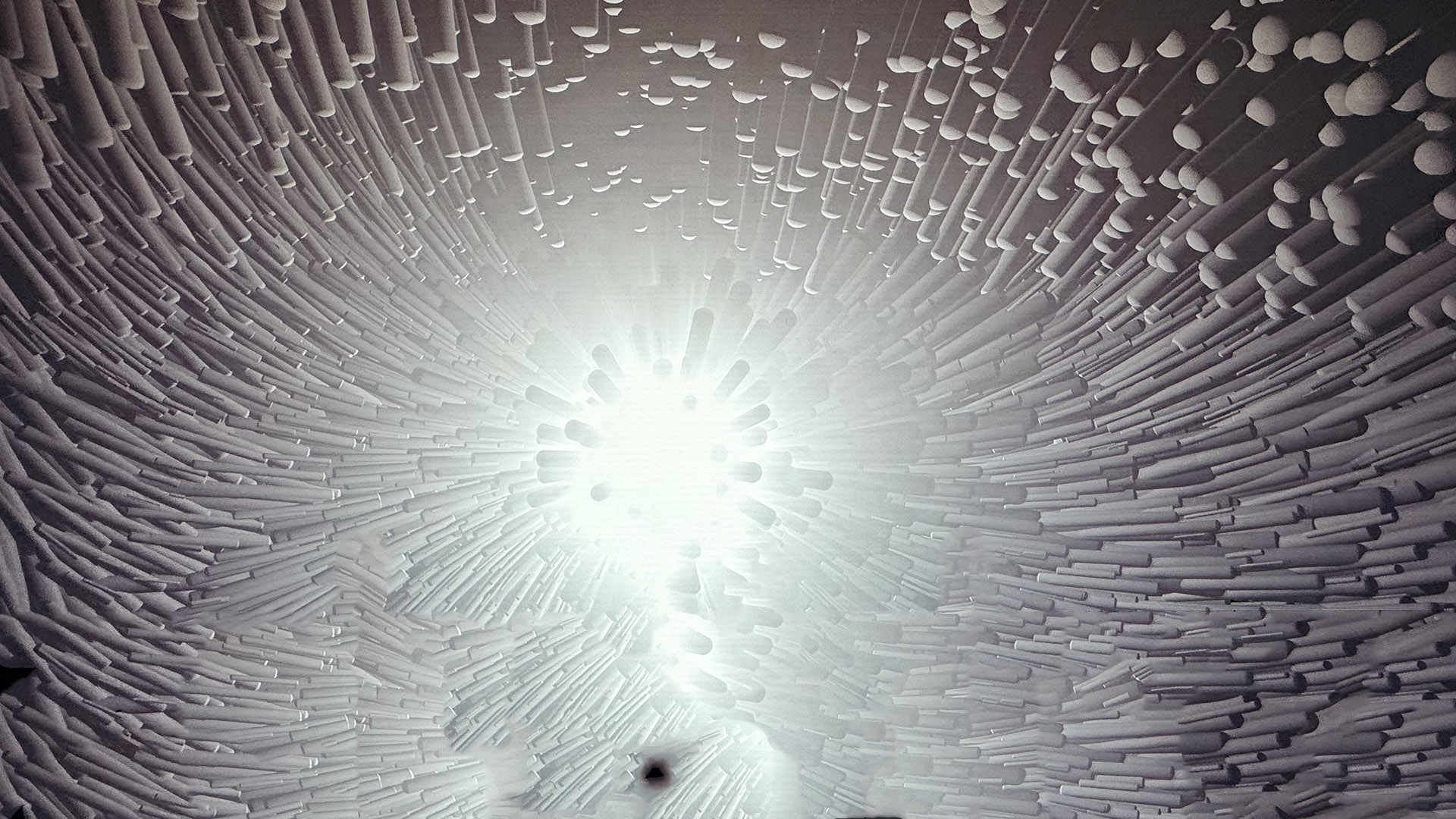 Working with the hugely talented Savva 'Maestro' Mihaescu we developed the visuals and sound in tandem, working in the same room and responding to each other's outputs in a slow motion conversation. It was important from the outset that with the all-encompassing nature of an immersive arena, that the final piece felt like a singular entity - neither image nor sound should be wholly dominant.